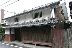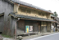 その先の右側には、紅殻塗りで虫籠窓の旧家があるが、元呉服屋である。
