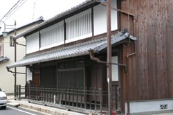今宿の町並には重厚な白壁連子格子の旧商家を残している。
