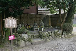 常盤御前小公園には、義経の母・常盤御前の墓とされる、二基の宝筐印塔と五輪塔が建っている。
