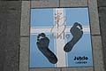 商店街は屋根付きで、歩道にはジュビロの選手の足型が刻まれていた (右写真)