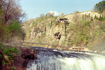 吹割の滝の下流部に、高さ15m、幅6mの鱒飛の滝がある。