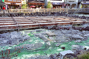 温泉の湧出量は、毎分三万二千リットル以上で、日本一である。
